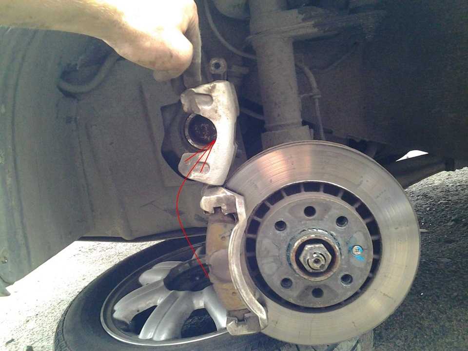 - По аналогии проделайте операцию по замене тормозных накладок на левом колесе.