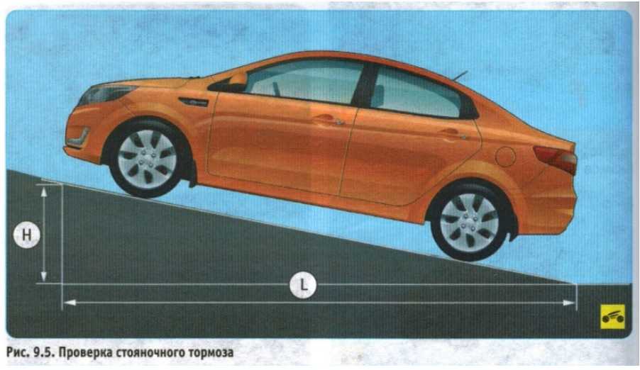 Чтобы понять, необходимо ли подтянуть тросики на Киа Рио 3, нужно загнать авто на эстакаду под углом 25 градусов. Конструкция подойдет, если высота ее равна 1,25 м, а длина заезда составляет 5 м. Если рычаг удержит машину, подтягивать не нужно. Более простой способ проверки предполагает полное поднятие рычага вверх на стоящем на ровной поверхности Kia Rio. Если действия выполнены корректно, сдвинуть автомобиль не получится. Если же наблюдается иная картина, нужно подтянуть.