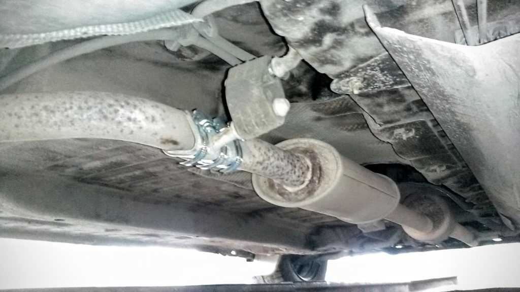Расположение системы выпуска отработавших газов на автомобиле (защита силового агрегата для наглядности снята)