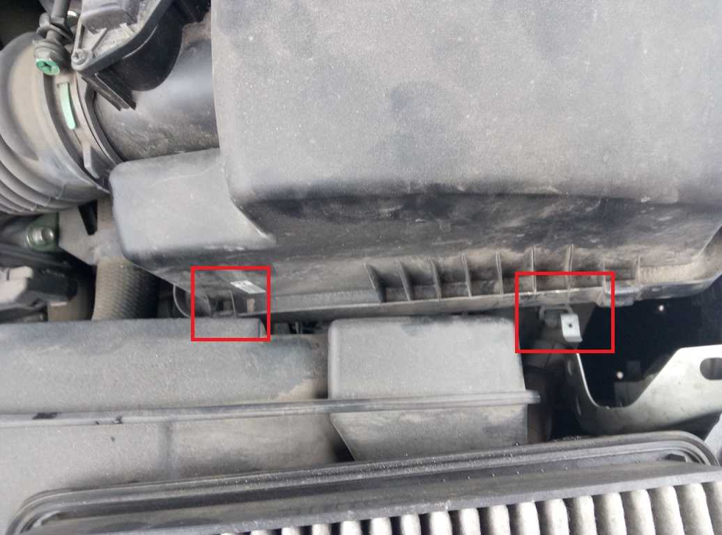 Воздушный фильтр установлен в пластиковом корпусе, расположенном справа от продольной оси автомобиля под воздуховодом обдува аккумулятора и щитком, к которому этот плоский воздушный патрубок крепится. Последовательность действий: