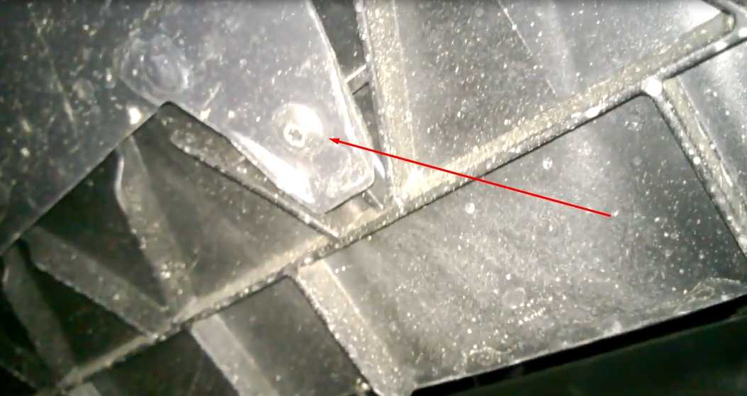 6. Затем ключиком Т25 откручиваем 3 самореза сверху решетки: