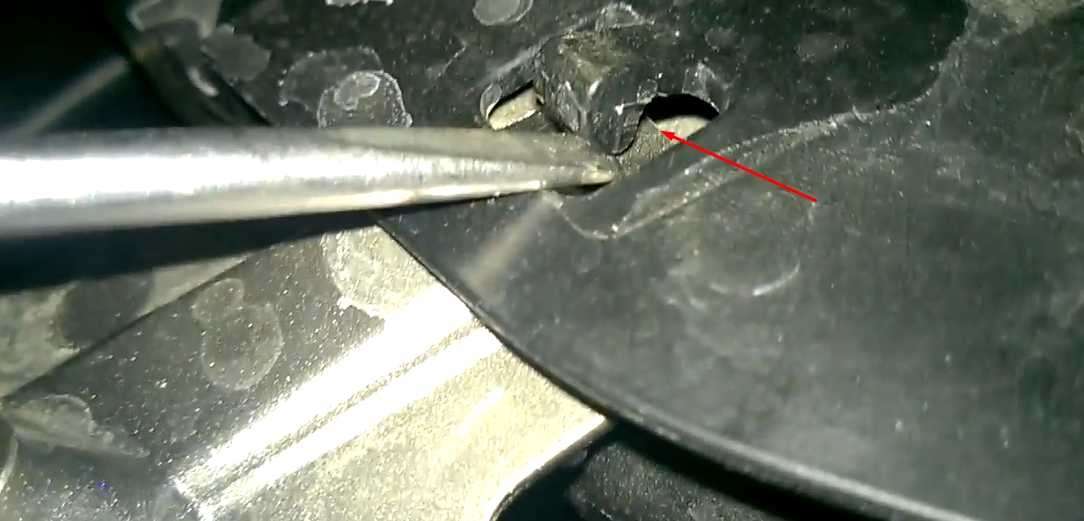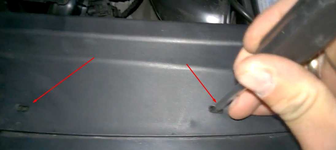 9. Затем у решетки снизу есть крючки-защелки в количестве двух штук, которые зацепляются за бампер,их нужно снизу поддеть отверткой и она выйдет.