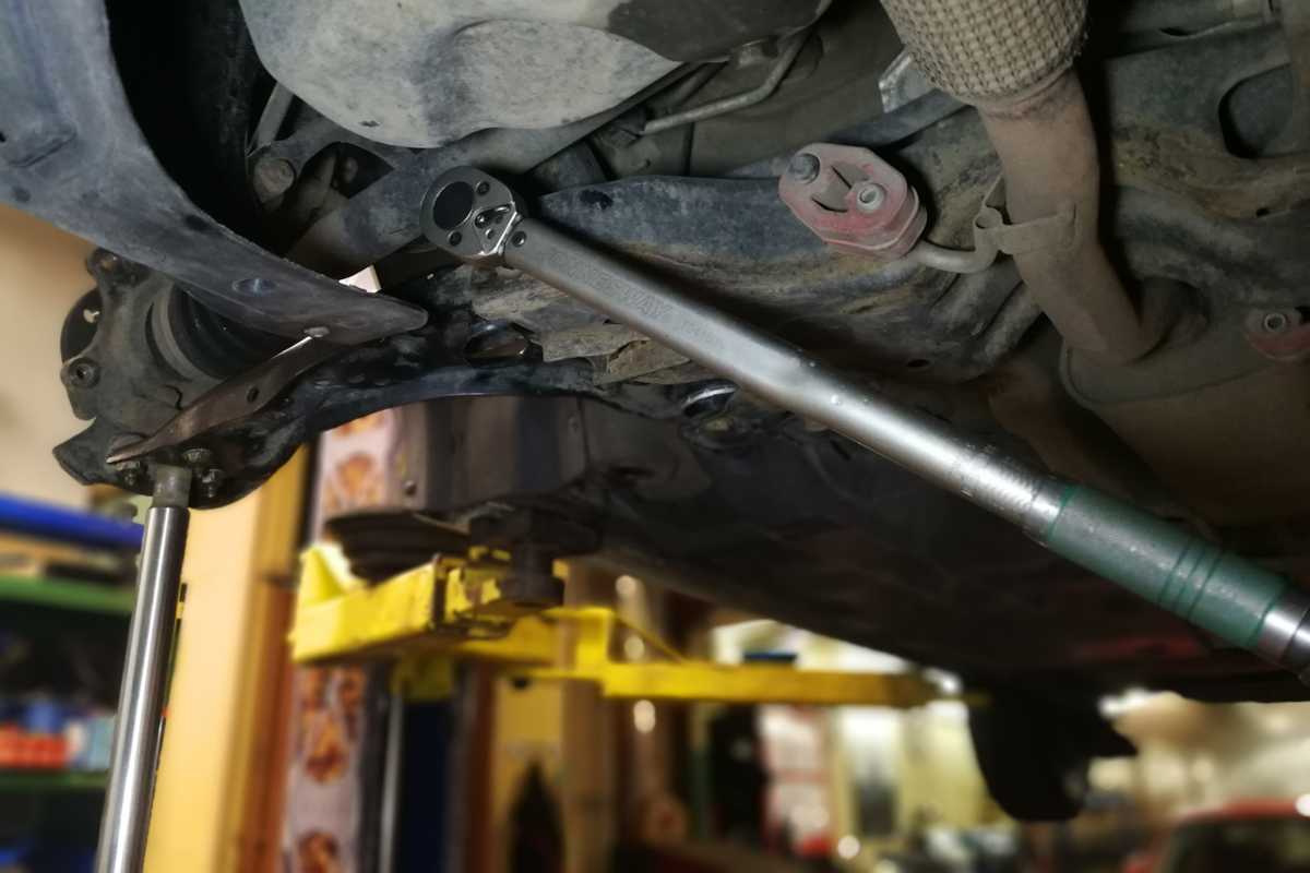 - Установить автомобиль на смотровой яме или боксе.