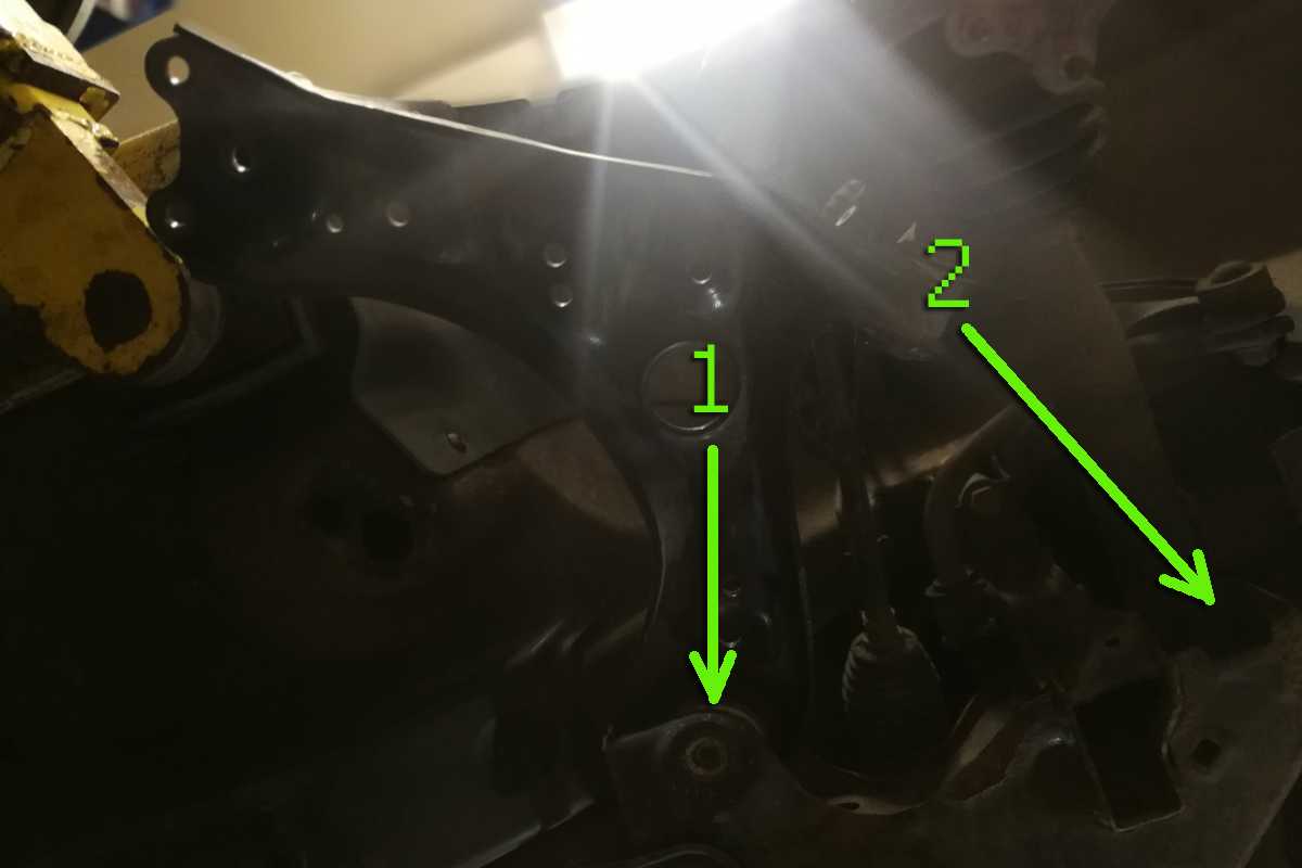 -3 болта крепления шаровой опоры, — вертикальный болт заднего крепления, — горизонтальный болт переднего крепления.