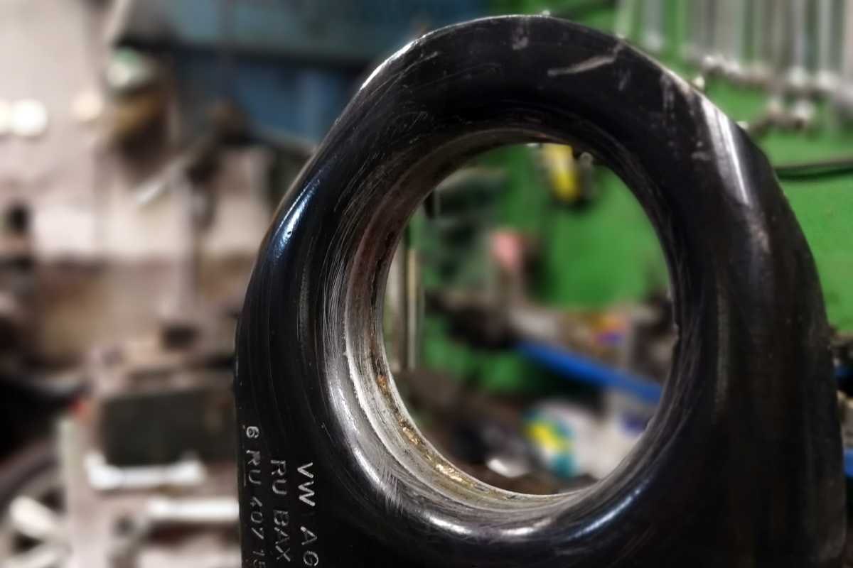 Сайлентблок – это две металлические втулки, сваренные относительно друг друга резиной. И неисправность сайлентблока и заключается в нарушении целостности конструкции. Ищем надрывы и трещины.