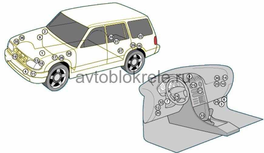 - Точки подключения автосигнализации на Ford Explorer 1995-1998