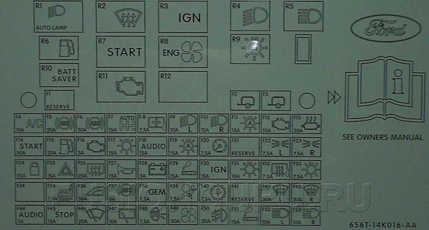- Обозначение предохранителей под капотом Ford Fiesta/Fusion