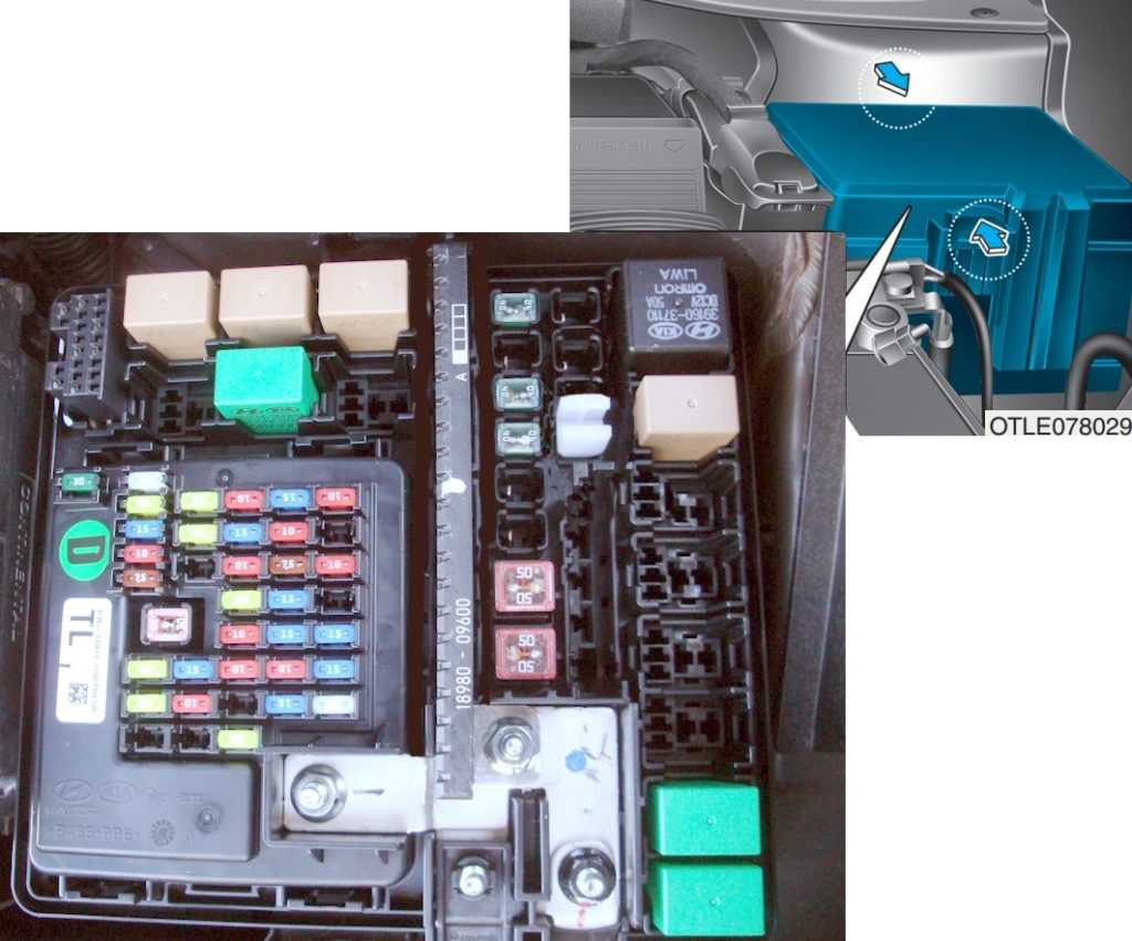 - Хундай Санта Фе, предохранители под капотом