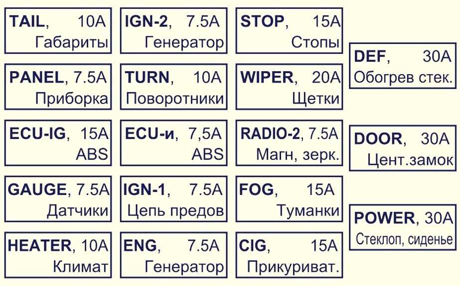 Расшифровка предохранителей моторного отсека