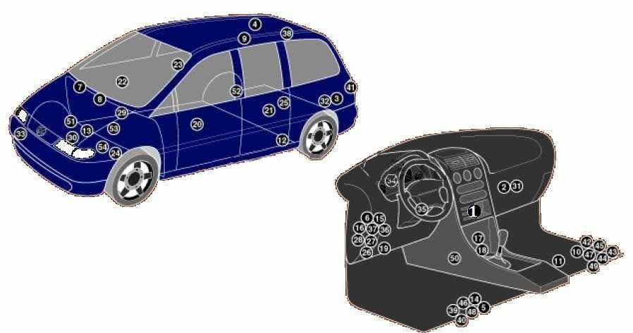 | 35 | Кольцевая антенна иммобилайзера — возле замка зажигания |