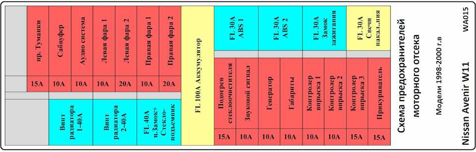 - Распределение предохранителей в блоке предохранителей моторного отсека