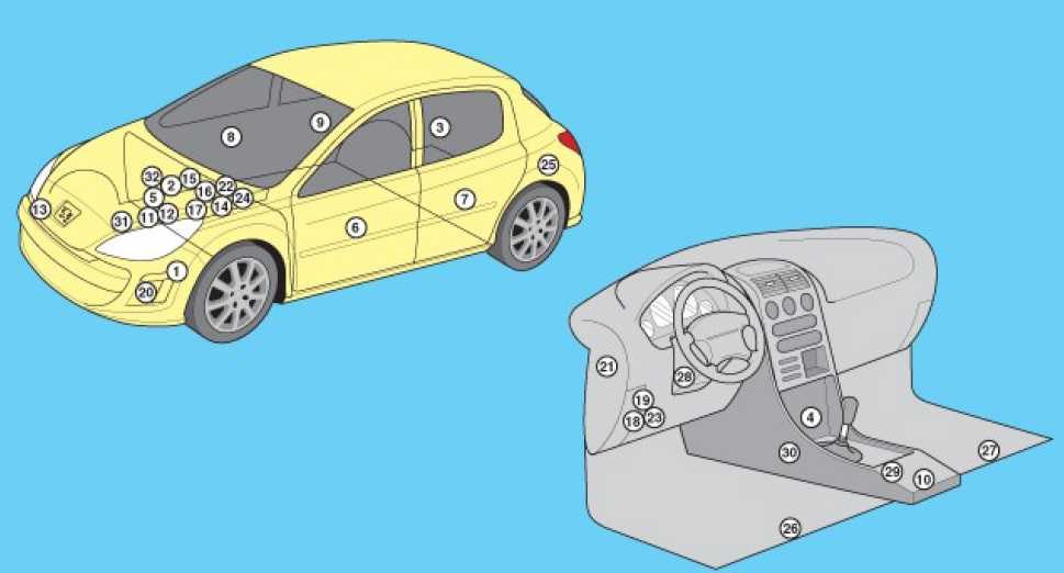 | 10 | 30 | Компоненты системы электронного управления двигателем (на бензиновом: катушки зажигания, электромагнитные клапаны, датчики кислорода, форсунки, элементы системы подогрева, топливный насос, электронный термостат; на дизельном: электромагнитные клапаны, элементы системы подогрева) |