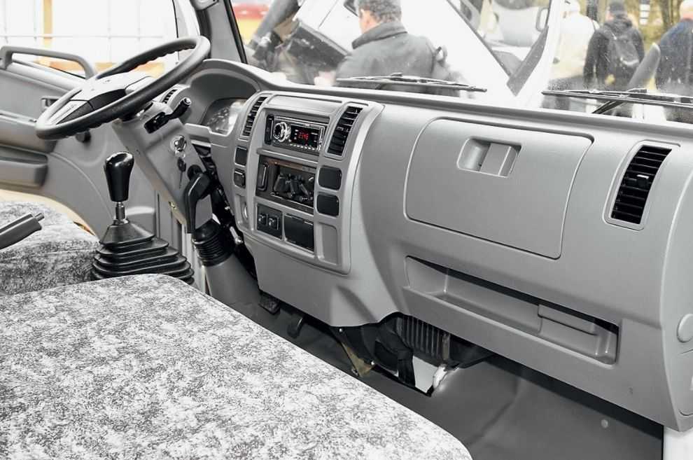 Перед пассажиром будет находиться бардачок и глубокая полка для документов. Из интересного можно выделить наличие опционального подогрева всех трех сидений, люка также в качестве опции и утепление кабины.