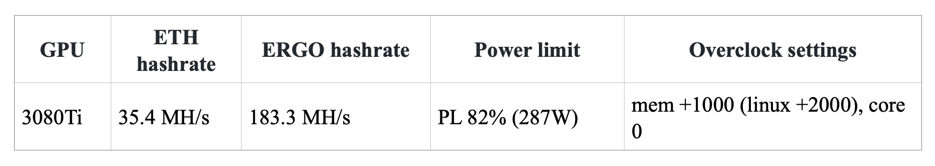 Интерфейс работы майнера T-Rex на RTX 3080 Ti / ERGO