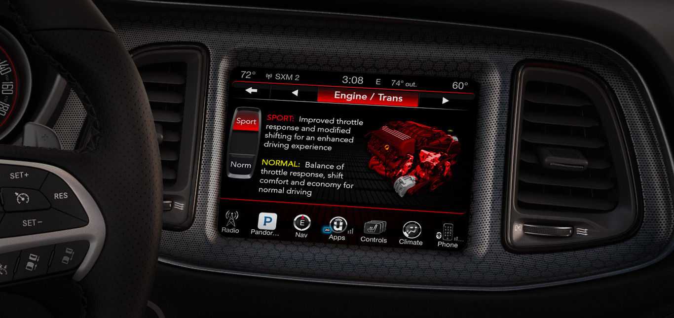 Выбор мощности с Dodge Performance Pages. Выберите настройки для двигателя, трансмиссии, рулевого управления и дроссельной заслонки.