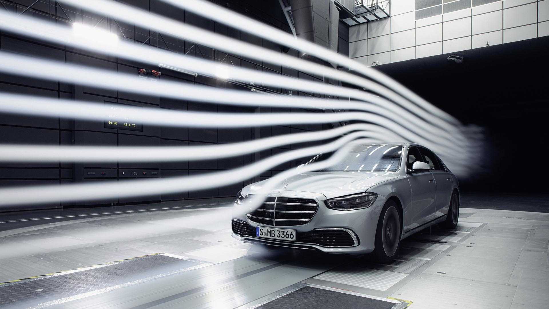 При этом, несмотря на массивные размеры, новый S-класс — один из самых обтекаемых серийных автомобилей в мире: коэффициент аэродинамического сопротивления равен 0,22.