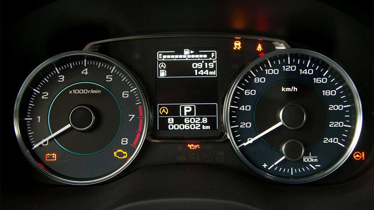 В новой Subaru WRX STI тахометр и спидометр заняли равноправные места в комбинации приборов и традиционно снабжены ярко-красной подсветкой.