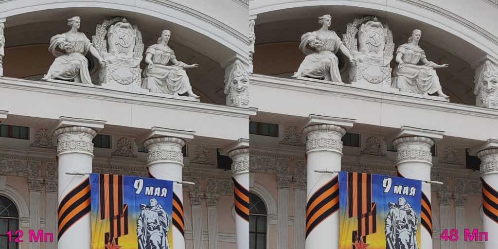 К счастью, сзади установлены более качественные сенсоры. Главный на 48 Мп, который по традиции снимает в 12 Мп. Если нужна максимальная детализация — включайте 48 мегапикселей вручную. Впрочем, для рядовых фоток достаточно и 12 Мп. Ниже пруф с наглядной разницей.