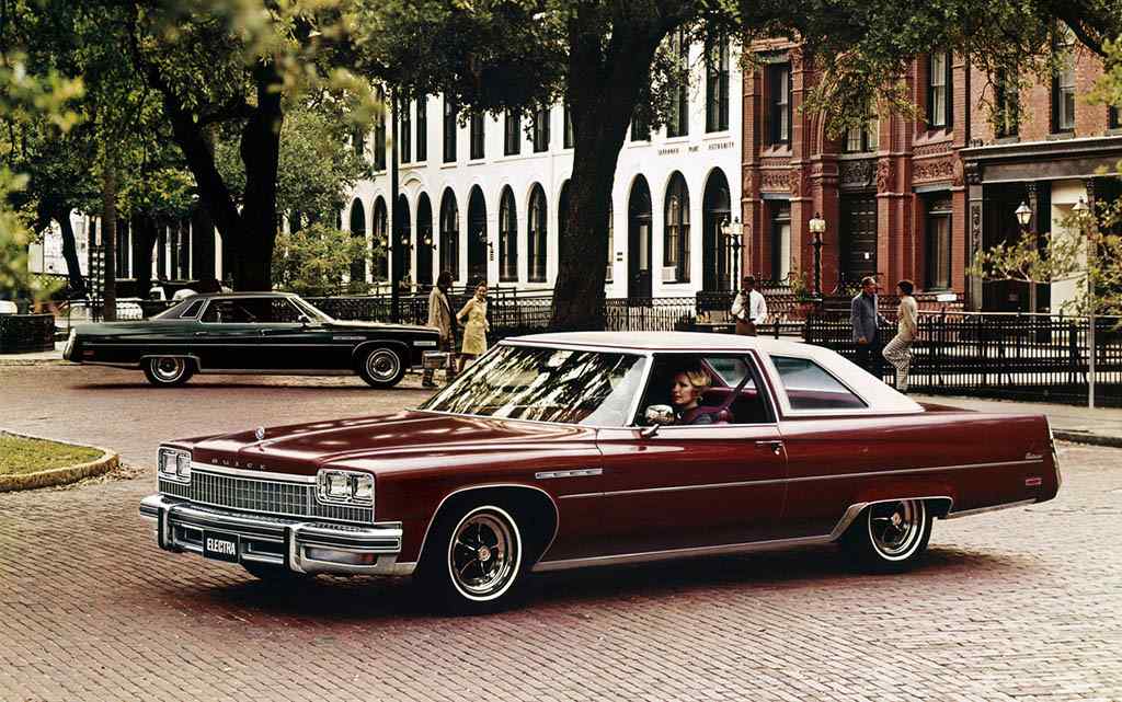 Если не хватило денег на Cadillac, то нужно покупать Buick, такой нехитрой логикой руководствовались американцы в 1970-е. Тем более, что Buick Electra образца 1975 года по размерам незначительно уступал Fleetwood (всего лишь на 8 мм короче и на 2 мм уже). Конечно Buick немного схитрил, ведь колесная база Electra составляла 127 дюймов, против 133 у флагмана GM. Но попкупатли могли рассчитывать на вполне серьезный уровень оснащения. К примеру на двигатель объемом 7,5 литра мощностью 205 л.с.