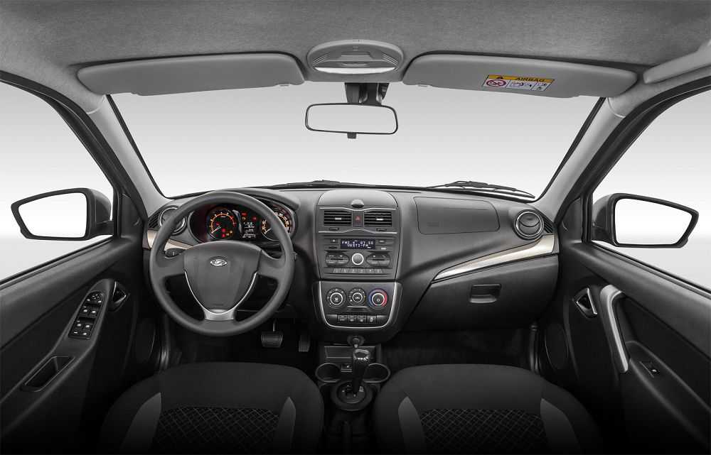 Бюджетный статус новинки модельного ряда чётко просматривается в комплектации и оформлении салонного объема. В отделочном ассортименте только ткани и искусственная кожа, а также недорогой жесткий пластик. Ничего нового не предлагает скопированная с Калины передняя панель. В наличии: