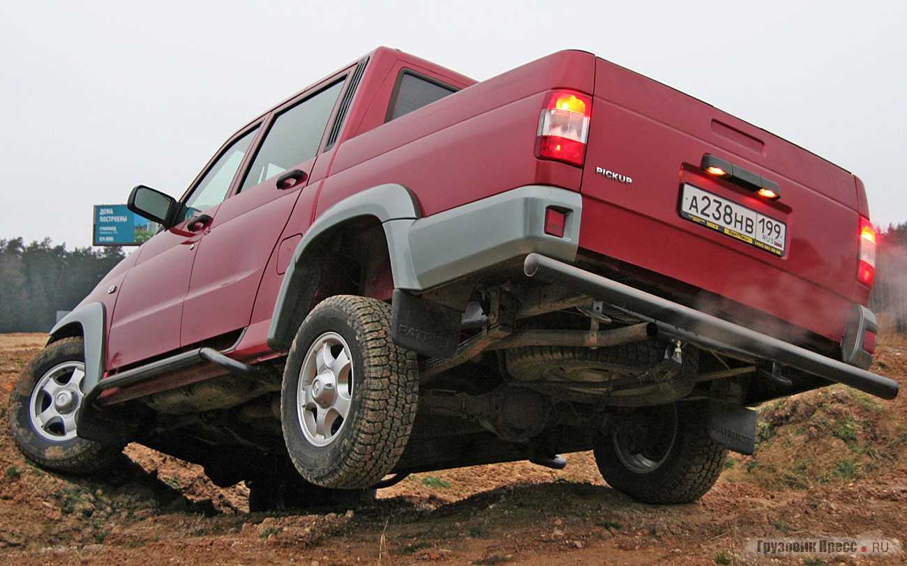 Подвеска понравилась и в городе, и на бездорожье. Плавность хода по меркам сегмента приличная, при проезде «лежачих полицейских» UAZ Pickup не подбрасывает задних пассажиров в воздух, как иные конкуренты. Да и с энергоемкостью, разумеется, все в порядке – на серьезных ухабах подвеску не пробивает. Что касается проходимости на бездорожье, здесь автомобиль на высоте – по грязи и неглубокому снегу можно ползти, даже не включая понижающую передачу. Однако есть все же ахиллесова пята – невозможность справиться с диагональным вывешиванием, ведь блокировки заднего дифференциала не предусмотрено, нет и ESP, которая могла бы подтормозить отдельные колеса.