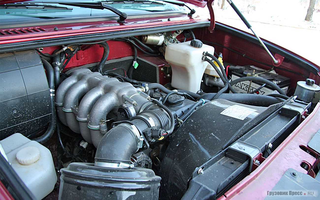 Большой аппетит – один из немногих недостатков инжекторного ЗМЗ-409.10. В плане надежности и ремонтопригодности бензиновый мотор зарекомендовал себя удовлетворительно, даже несмотря на большое количество электронной начинки. Вот только обслуживать его неудобно. Расположен он высоко, и для доступа к узлам нужно карабкаться на специальную площадку переднего бампера. Об удобстве размещения масляного щупа тоже думали в последний момент. Расположен он не возле радиатора (как это сделано на большинстве европеоидов), а наоборот, ближе к ветровому стеклу. Проверить уровень масла можно только вытерев животом двигатель или крыло.